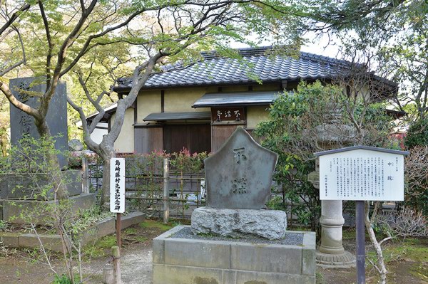 中院又称“佛地院”,正式名称为“天台宗别格本山”,从屹立山门外的石柱“日莲上人传法灌顶之寺”看来,显然与日莲正宗也有密切关系了。古木参天的幽静院内,有座明治至大正时期著名诗人与小说家岛崎藤村,赠与岳母加藤干的茶室“不染亭”,目前也已列入文化遗产。